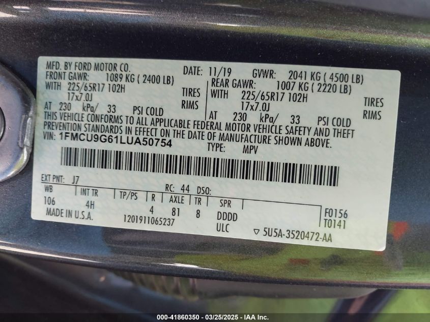 FORD ESCAPE 1.5 2020 р.в., Повний привід (1FMCU9G61LUA50754) з США