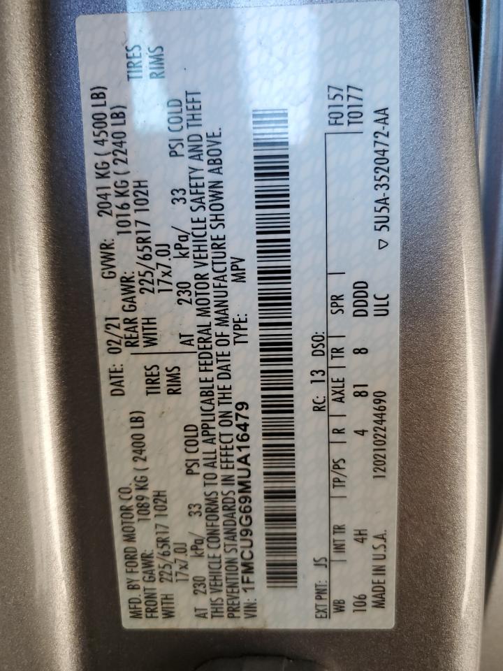 FORD ESCAPE 1.5 2021 р.в., 4x4 з переднім приводом (1FMCU9G69MUA16479) з США