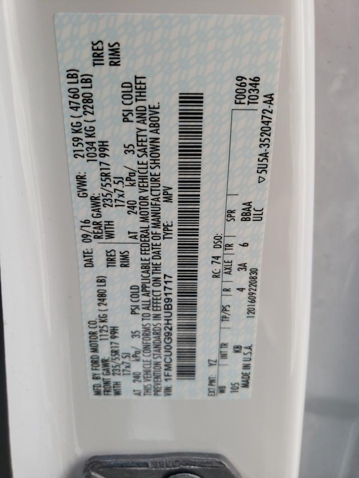 FORD ESCAPE 2.0 2017 р.в., (1FMCU0G92HUB91717) з США