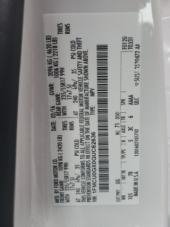 FORD ESCAPE 1.6 2016 р.в., (1FMCU0GX0GUC62636) з США