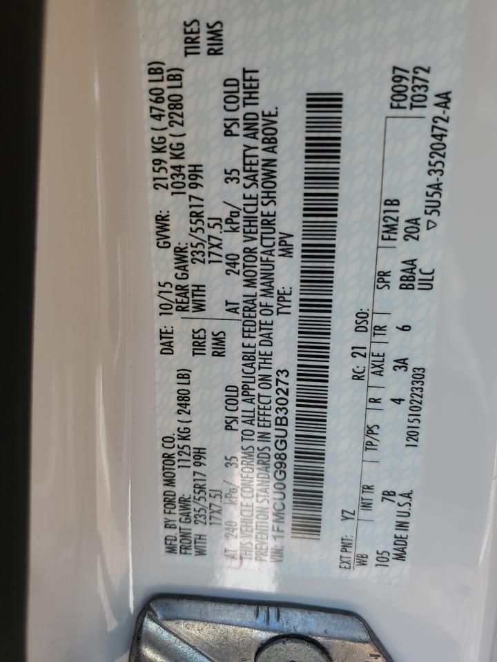 FORD ESCAPE 2.0 2016 р.в., (1FMCU0G98GUB30273) з США