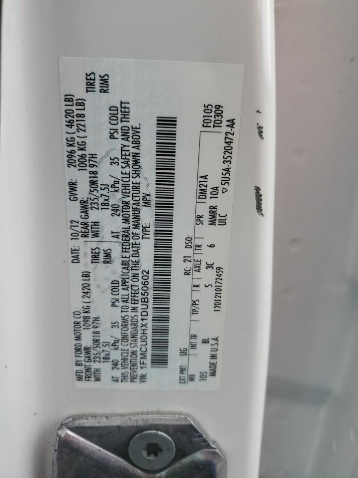 Колір БілийЦиліндри 4VIN 1FMCU0HX1DUB50602Стан Заводиться та їде (перевірено)Ушкодження Передня або задняДата аукціону 2025-11-04