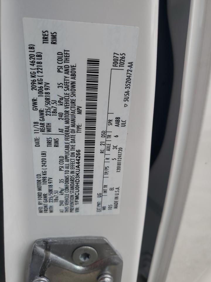 Колір БілийЦиліндри 4VIN 1FMCU0HD3KUA44266Стан ЗаводитьсяУшкодження Передня або задняДата аукціону 2025-11-03