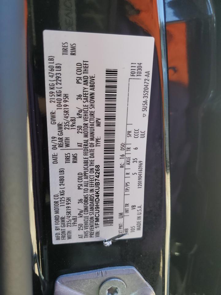 FORD ESCAPE 1.5 2019 р.в., 4x4 з переднім приводом (1FMCU9HD4KUB74268) з США