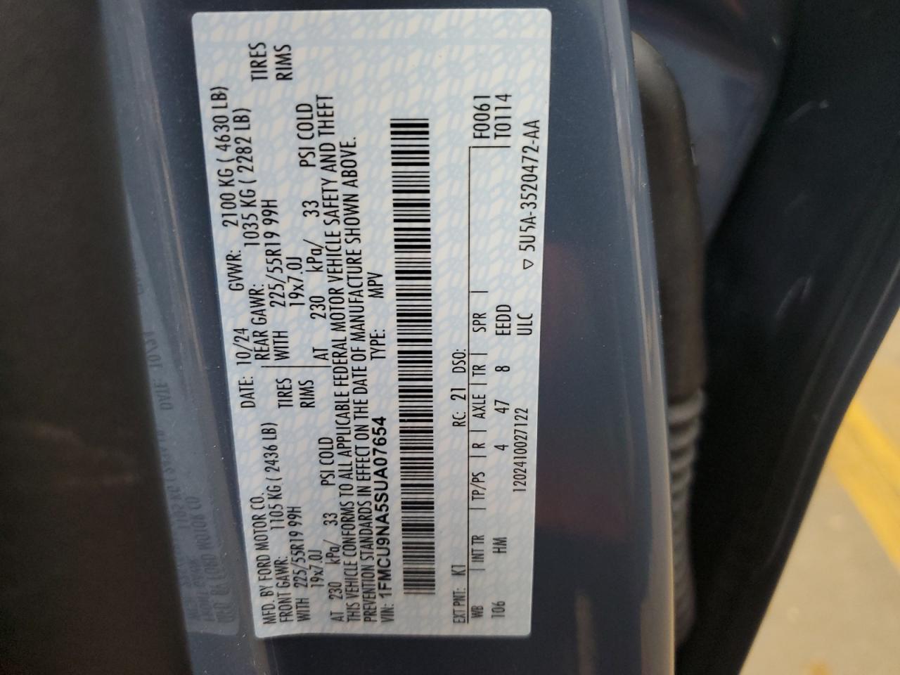 FORD ESCAPE 2.0 2025 р.в., 4x4 з переднім приводом (1FMCU9NA5SUA07654) з США