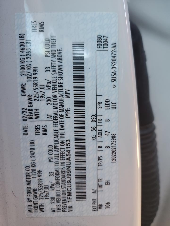 FORD ESCAPE 2.0 2022 р.в., 4x4 з переднім приводом (1FMCU9J99NUA54153) з США