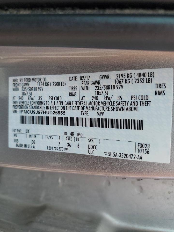 FORD ESCAPE 2.0 2017 р.в., 4x4 з переднім приводом (1FMCU9J97HUD26655) з США