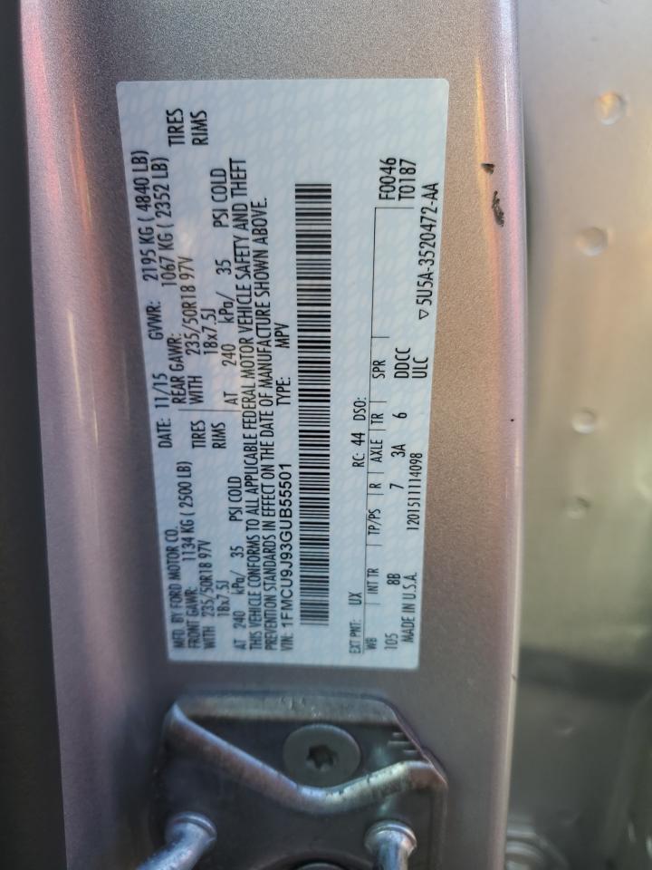 FORD ESCAPE 2.0 2016 р.в., 4x4 з переднім приводом (1FMCU9J93GUB55501) з США