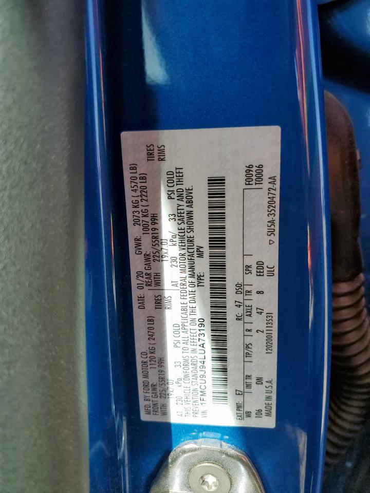 FORD ESCAPE 2.0 2020 р.в., 4x4 з переднім приводом (1FMCU9J94LUA73190) з США