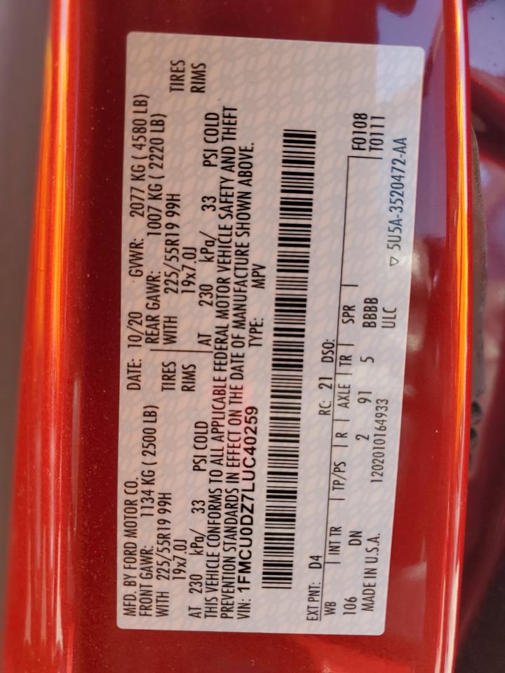 FORD ESCAPE 2.5 2020 р.в., (1FMCU0DZ7LUC40259) з США