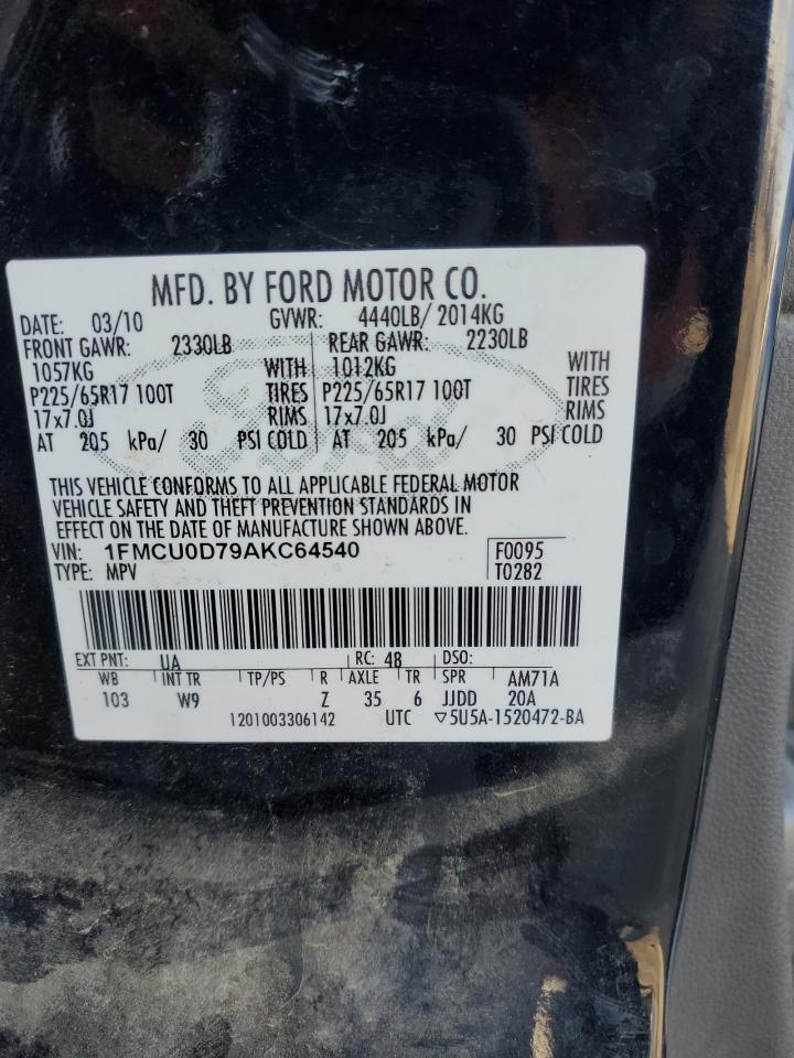 Колір ЧорнийЦиліндри 4VIN 1FMCU0D79AKC64540Стан НевідомоУшкодження Передня або задня