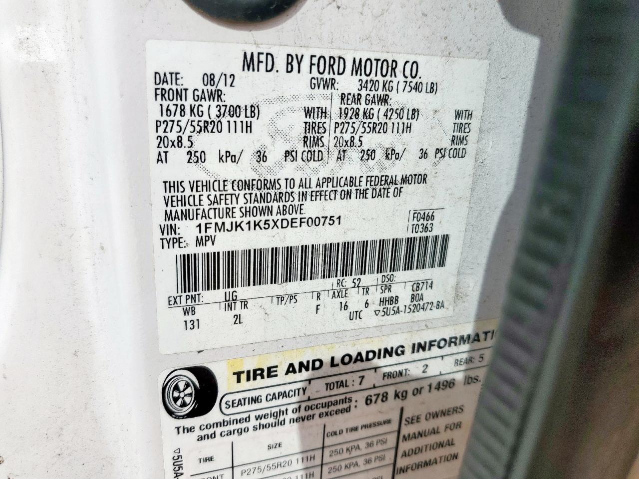 FORD EXPEDITION 5.4 2013 р.в., Задній привід (1FMJK1K5XDEF00751) з США