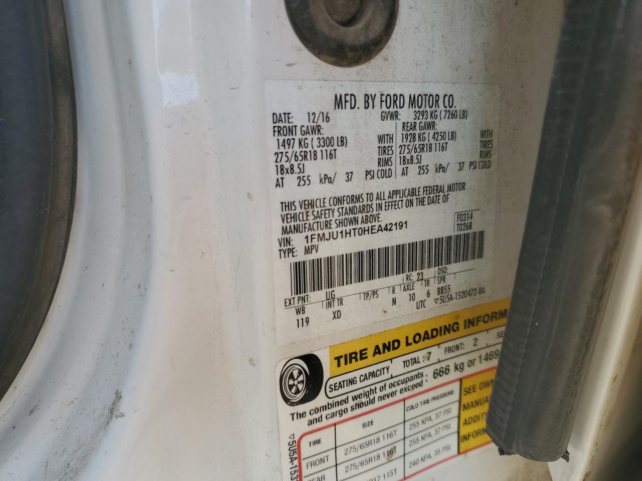 Колір БілийЦиліндри 6Привід Задній привідVIN 1FMJU1HT0HEA42191Стан Заводиться та їде (перевірено)Ушкодження З боківДата аукціону 2025-11-03