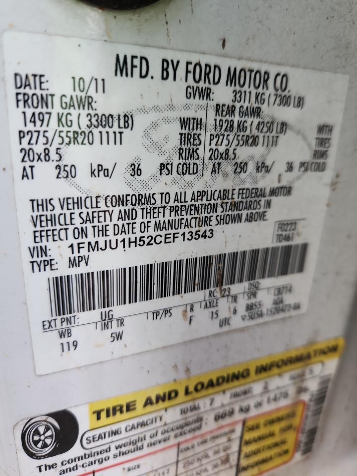 FORD EXPEDITION 5.4 2012 р.в., Задній привід (1FMJU1H52CEF13543) з США