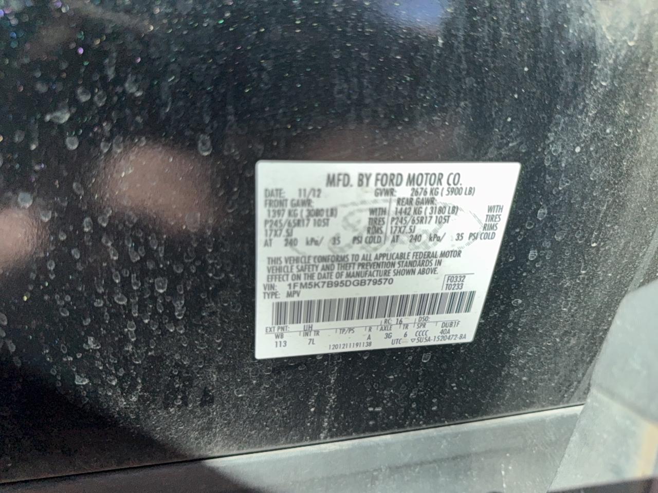 Колір ЧорнийЦиліндри 4VIN 1FM5K7B95DGB79570Стан Заводиться та їде (перевірено)Ушкодження Звичайний зносДата аукціону 2025-11-03