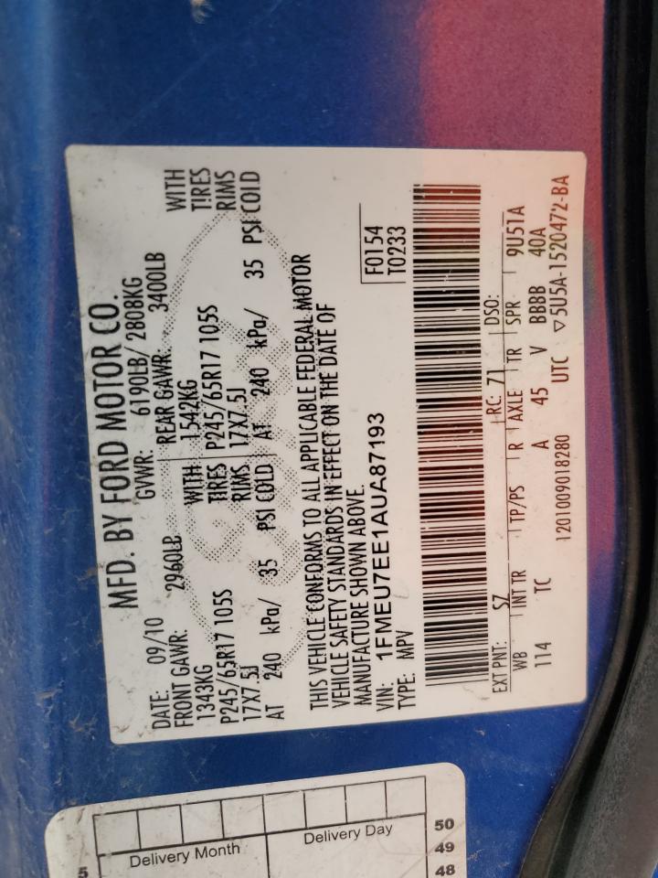 FORD EXPLORER 4.0 2010 р.в., 4x4 з заднім приводом (1FMEU7EE1AUA87193) з США