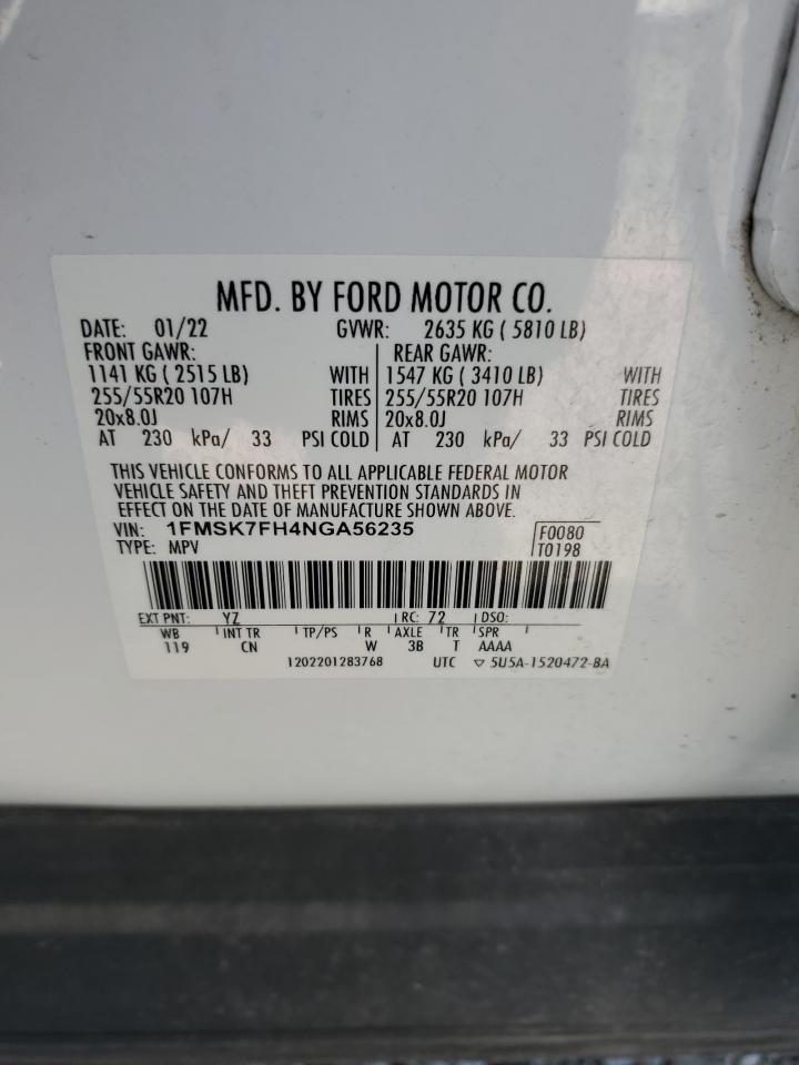 Колір БілийЦиліндри 4Привід Задній привідVIN 1FMSK7FH4NGA56235Стан НевідомоУшкодження Передня або задняДата аукціону 2025-11-03