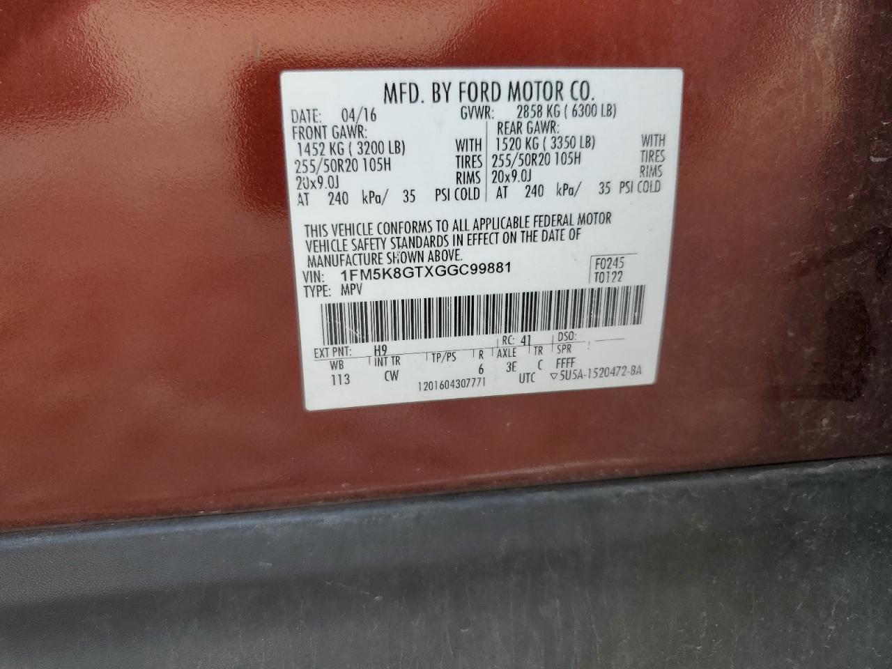 FORD EXPLORER 3.5 2016 р.в., 4x4 з переднім приводом (1FM5K8GTXGGC99881) з США