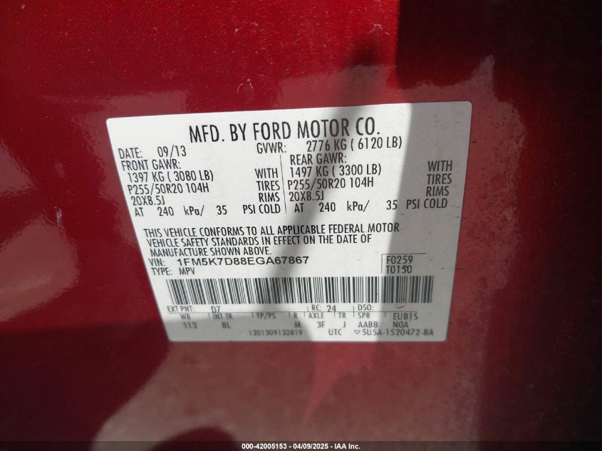 FORD EXPLORER 3.5 2014 р.в., Передній привід (1FM5K7D88EGA67867) з США