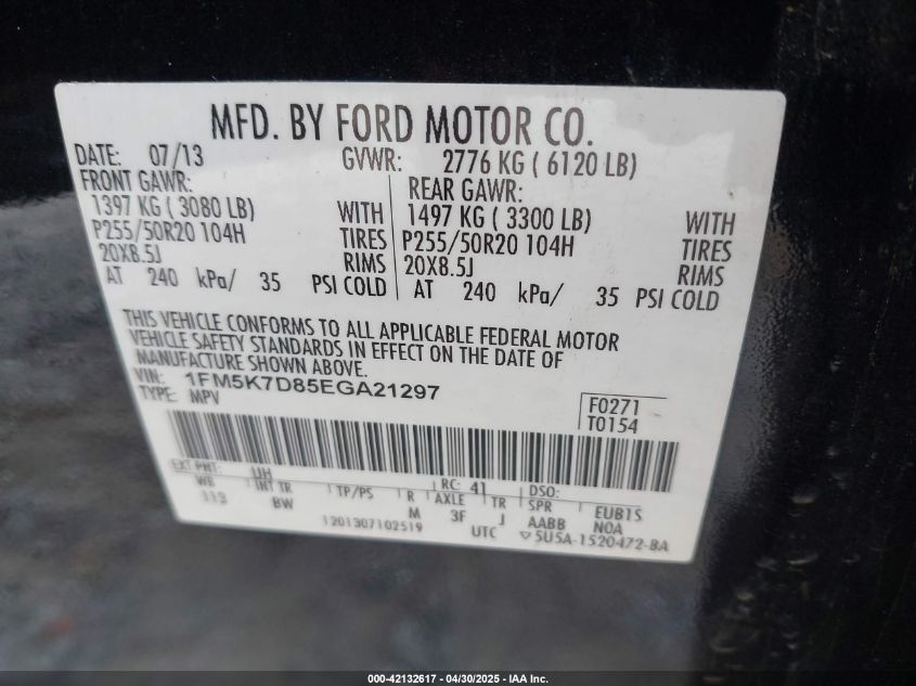 FORD EXPLORER 3.5 2014 р.в., Передній привід (1FM5K7D85EGA21297) з США