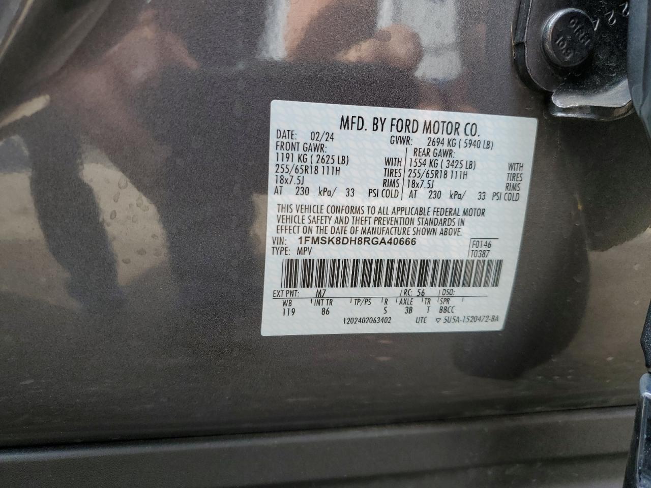 FORD EXPLORER 2.3 2024 р.в., 4x4 з заднім приводом (1FMSK8DH8RGA40666) з США