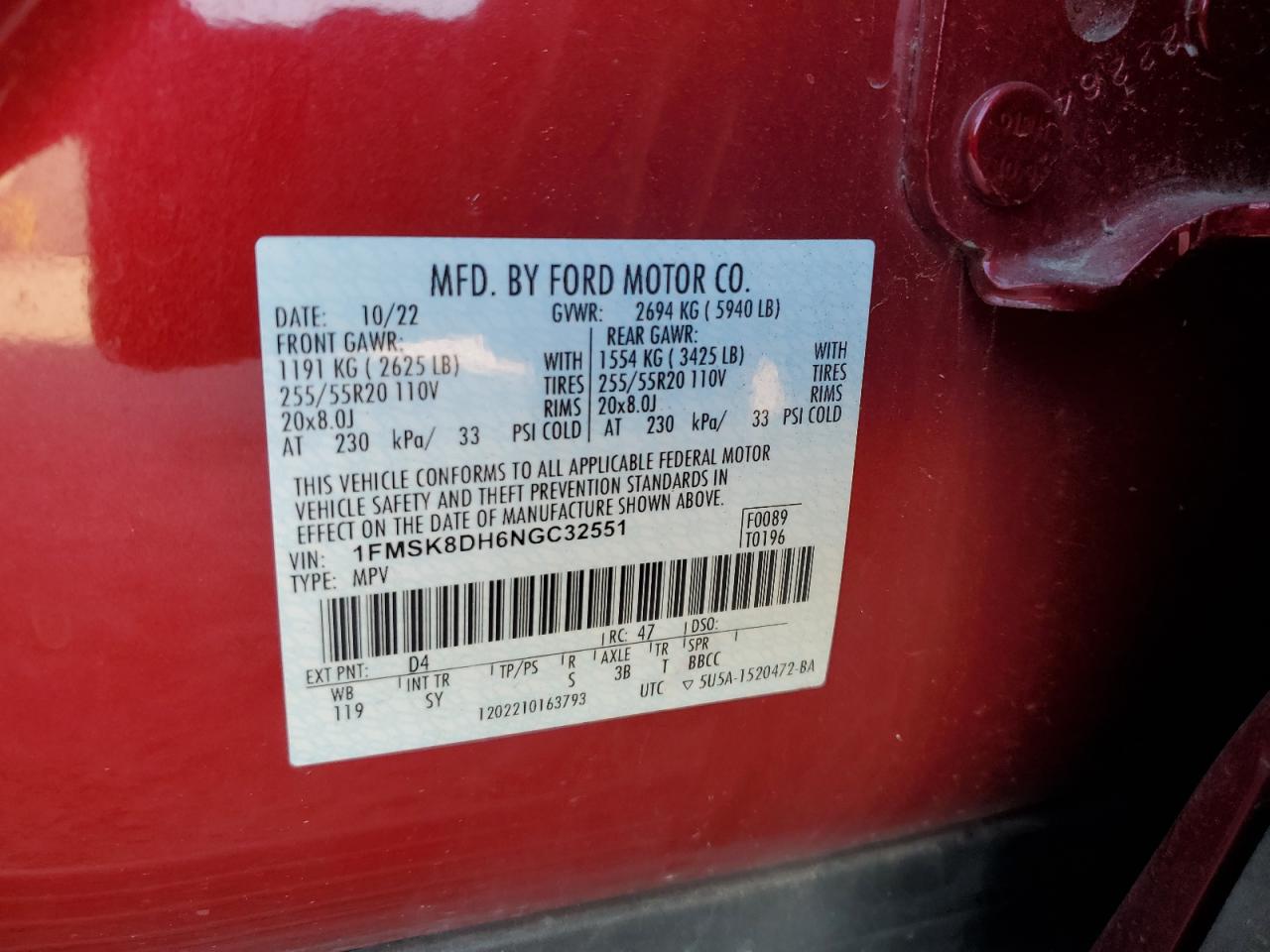 Колір ЧервонийЦиліндри 4Привід 4x4 з заднім приводомVIN 1FMSK8DH6NGC32551Стан Заводиться та їде (перевірено)Ушкодження З боків