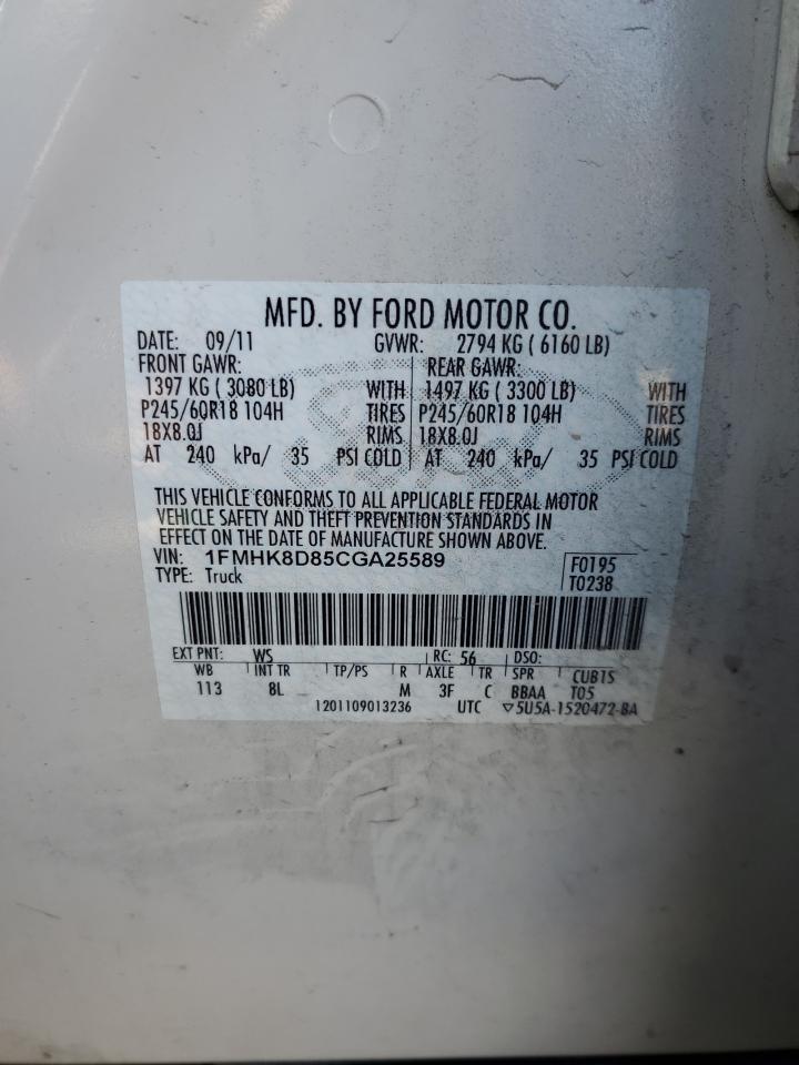 Колір БілийЦиліндри 6Привід 4x4 з переднім приводомVIN 1FMHK8D85CGA25589Стан Заводиться та їде (перевірено)Ушкодження Передня або задняДата аукціону 2025-11-06