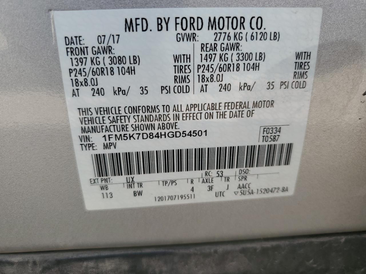 Колір СрібнийЦиліндри 6VIN 1FM5K7D84HGD54501Стан Заводиться та їде (перевірено)Ушкодження Передня або задня