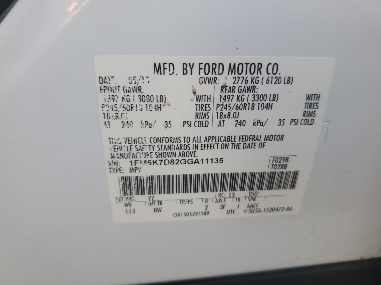 Колір БілийЦиліндри 6VIN 1FM5K7D82GGA11135Стан Заводиться та їде (перевірено)Ушкодження Передня або задня