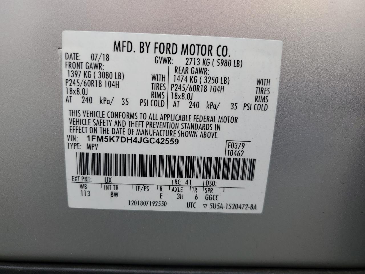 Колір СрібнийЦиліндри 4VIN 1FM5K7DH4JGC42559Стан Заводиться та їде (перевірено)Ушкодження ЗадняДата аукціону 2025-11-14