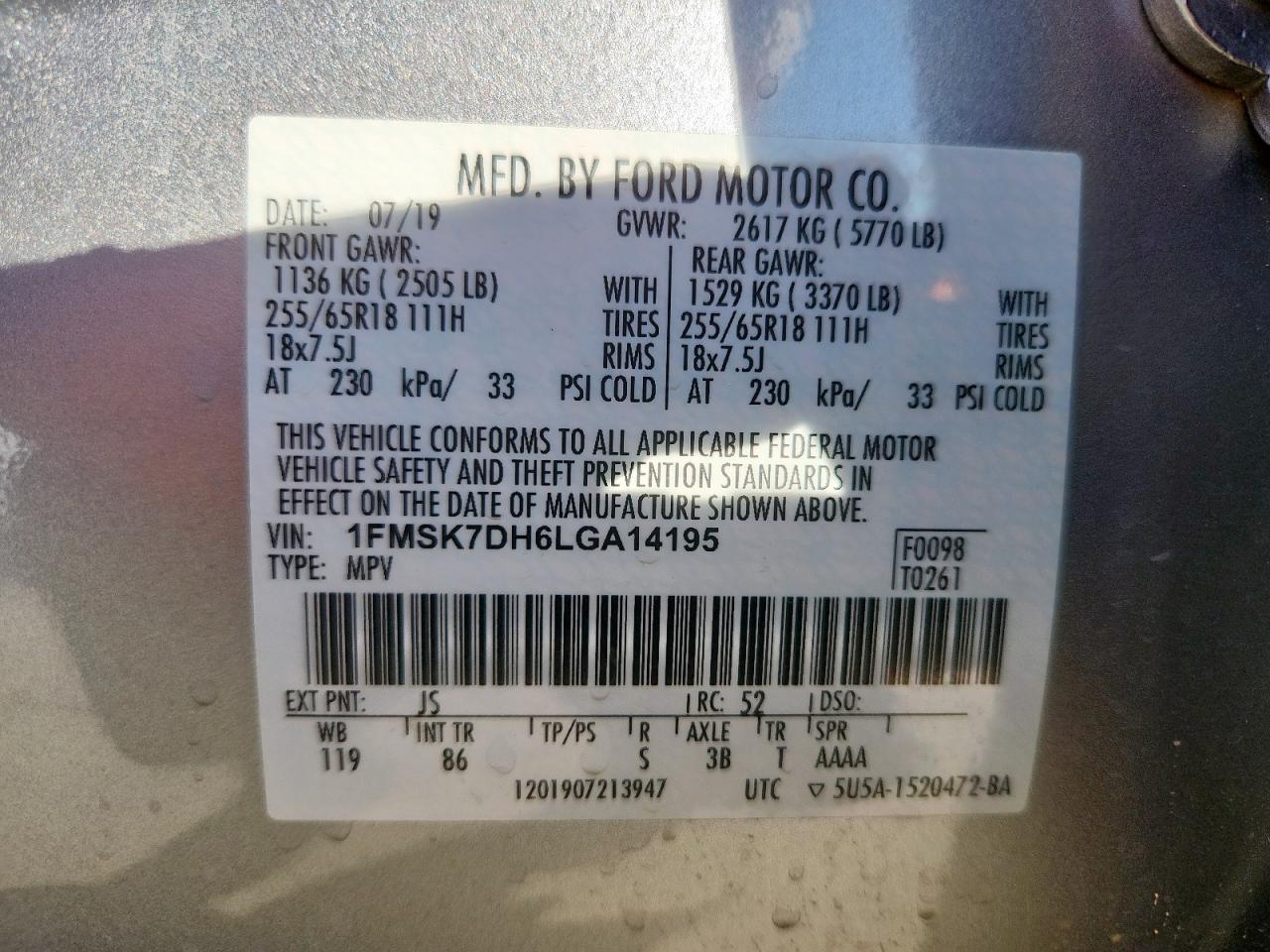 Колір СрібнийЦиліндри 4Привід Задній привідVIN 1FMSK7DH6LGA14195Стан Заводиться та їде (перевірено)Ушкодження Задня