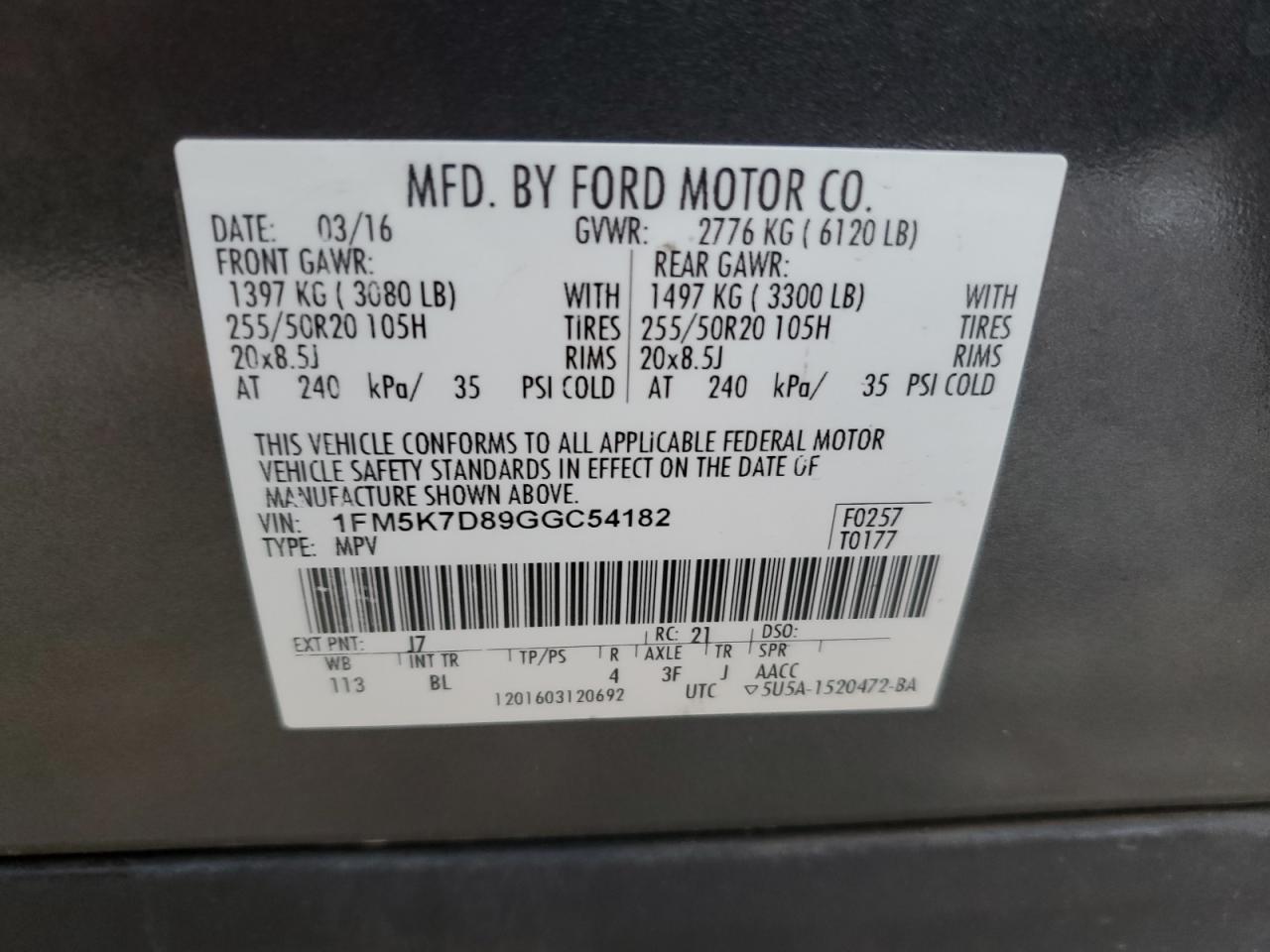Колір СірийЦиліндри 6VIN 1FM5K7D89GGC54182Стан ЗаводитьсяУшкодження Передня або задня