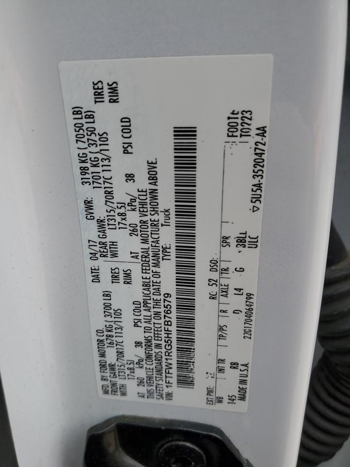 Колір БілийЦиліндри 6Привід 4x4 з заднім приводомVIN 1FTFW1RG5HFB76579Стан Заводиться та їде (перевірено)Ушкодження Передня або задня