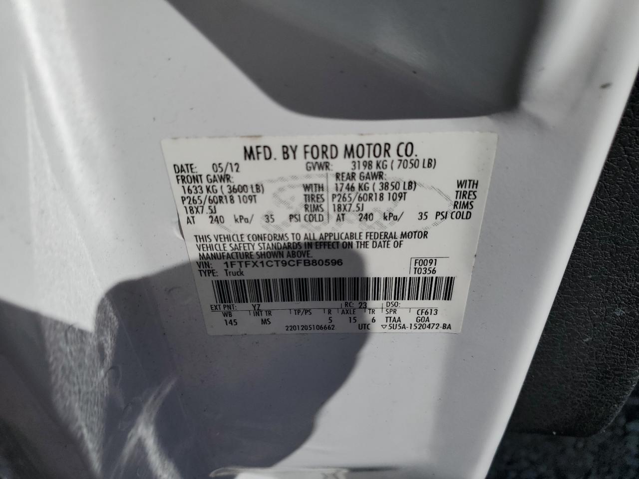 FORD F-150 3.5 2012 р.в., Задній привід (1FTFX1CT9CFB80596) з США