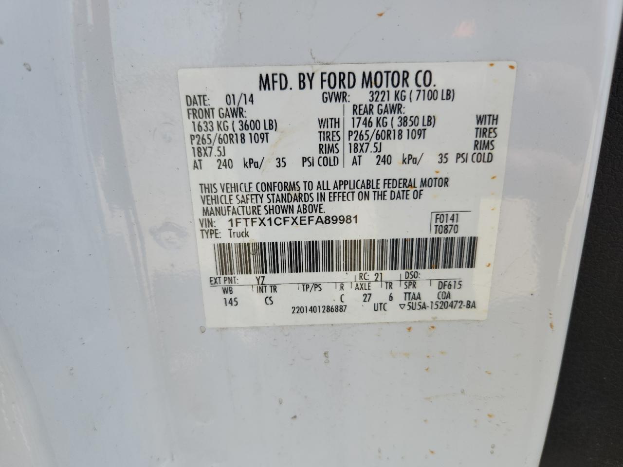 FORD F-150 5.0 2014 р.в., Задній привід (1FTFX1CFXEFA89981) з США