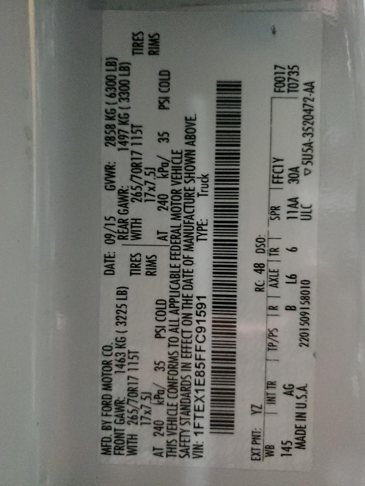FORD F-150 3.5 2015 р.в., 4x4 з заднім приводом (1FTEX1E85FFC91591) з США