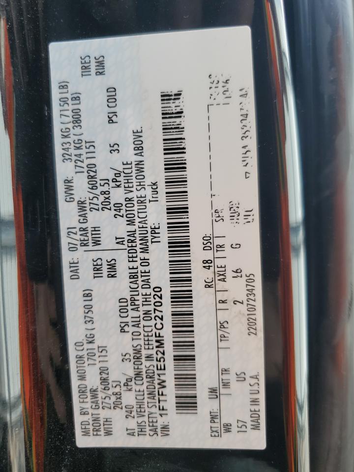 FORD F-150 5.0 2021 р.в., 4x4 з заднім приводом (1FTFW1E52MFC27020) з США