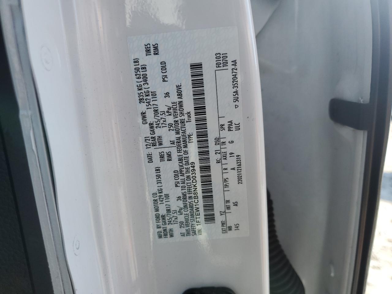 Колір БілийЦиліндри 6Привід Задній привідVIN 1FTEW1CB8NKD03949Стан НевідомоУшкодження Передня або задня