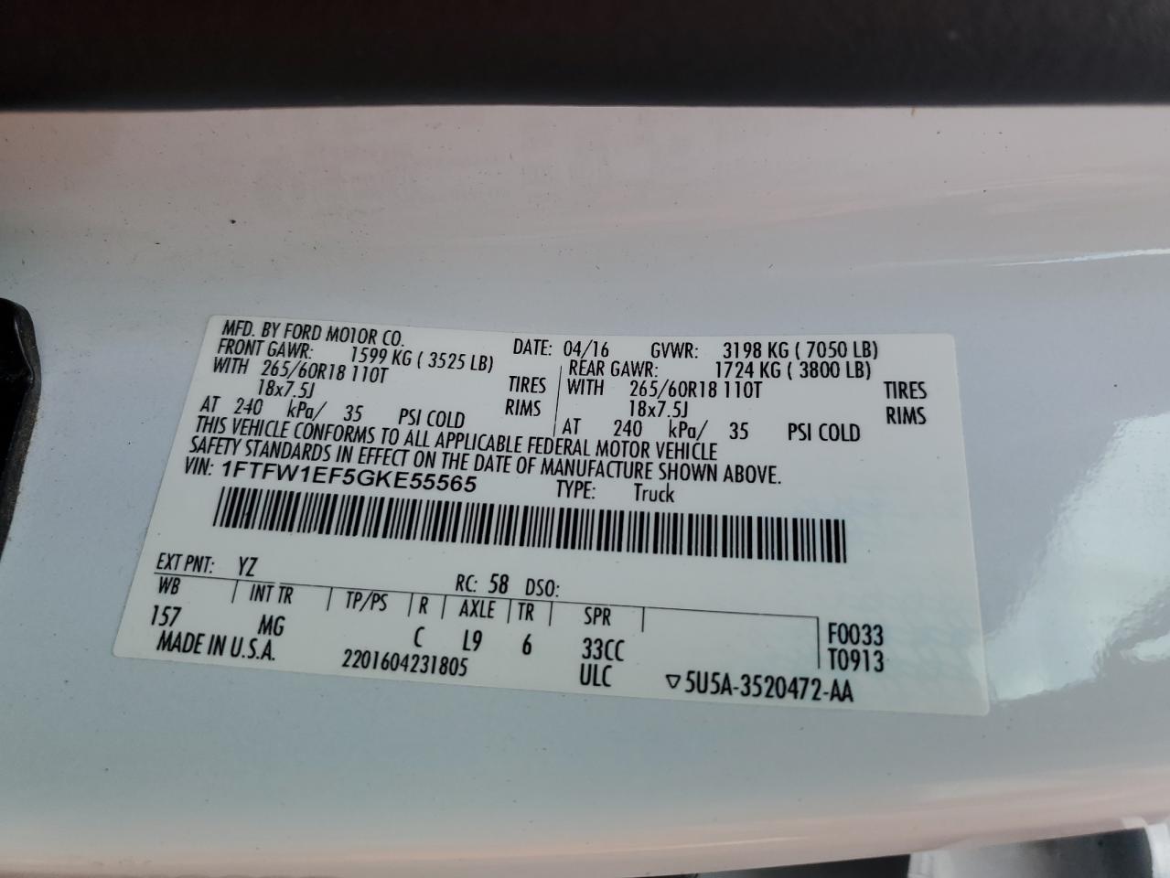 Колір БілийЦиліндри 8Привід 4x4 з заднім приводомVIN 1FTFW1EF5GKE55565Стан Заводиться та їде (перевірено)Ушкодження Передня або задня