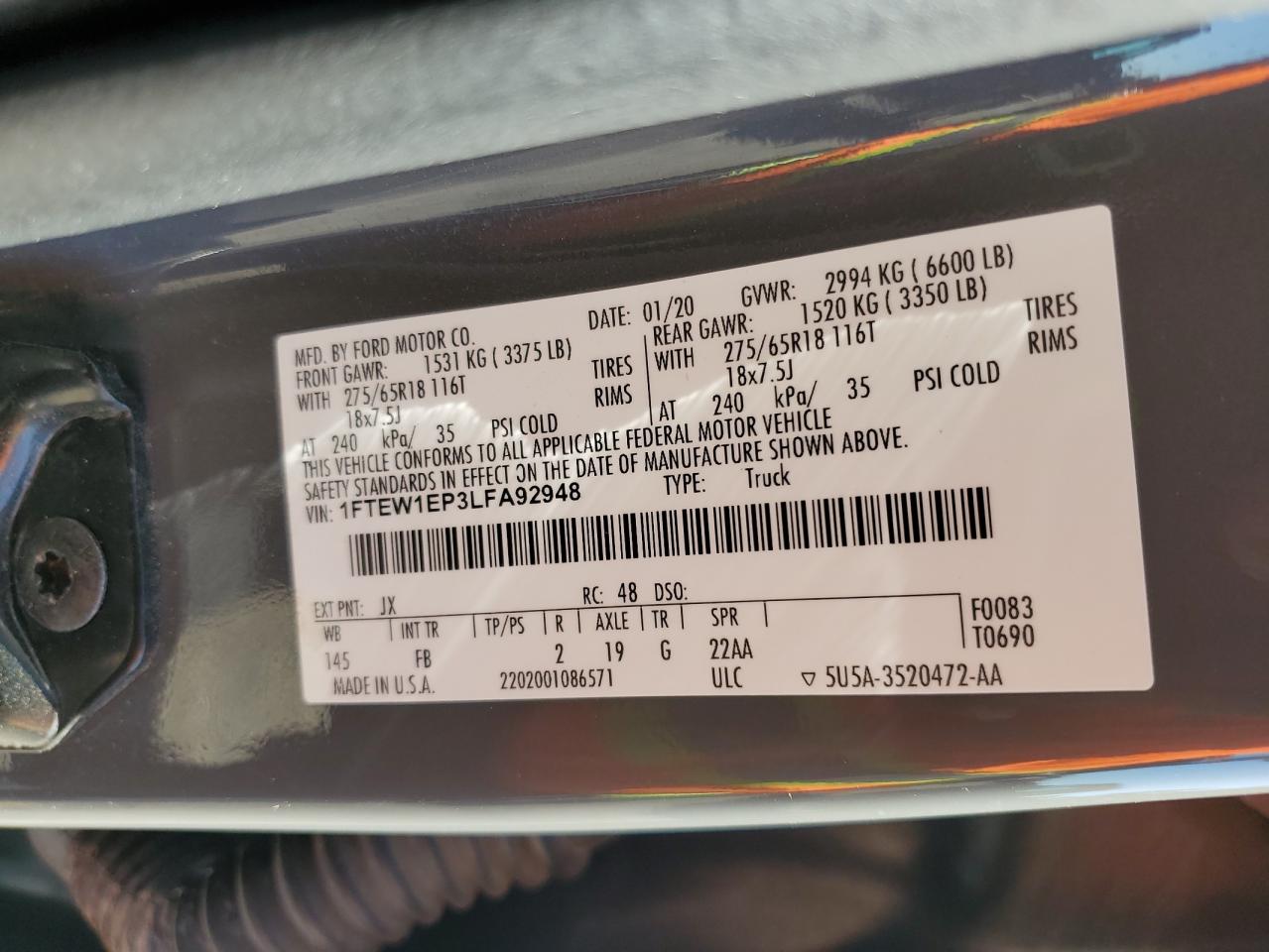FORD F-150 2.7 2020 р.в., 4x4 з заднім приводом (1FTEW1EP3LFA92948) з США