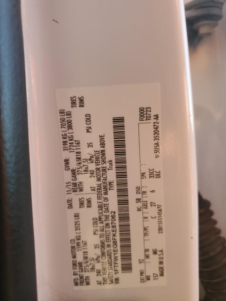 Колір БілийЦиліндри 6Привід 4x4 з заднім приводомVIN 1FTFW1EG8FKE87062Стан Заводиться та їде (перевірено)Ушкодження Град