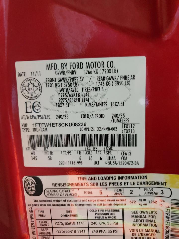 FORD F-150 3.5 2012 р.в., 4x4 з заднім приводом (1FTFW1ET8CKD08236) з США