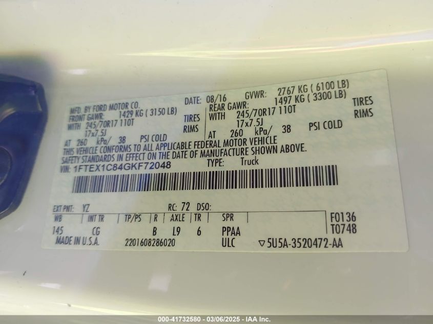 FORD F-150 3.5 2016 р.в., (1FTEX1C84GKF72048) з США
