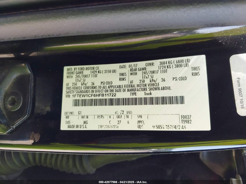 FORD F-150 5.0 2017 р.в., (1FTEW1CF6HFB11722) з США
