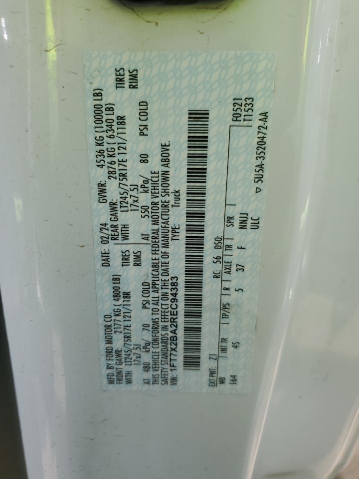 Колір БілийЦиліндри 8Привід 4x4 з заднім приводомVIN 1FT7X2BA2REC94383Стан Заводиться та їде (перевірено)Ушкодження З боків