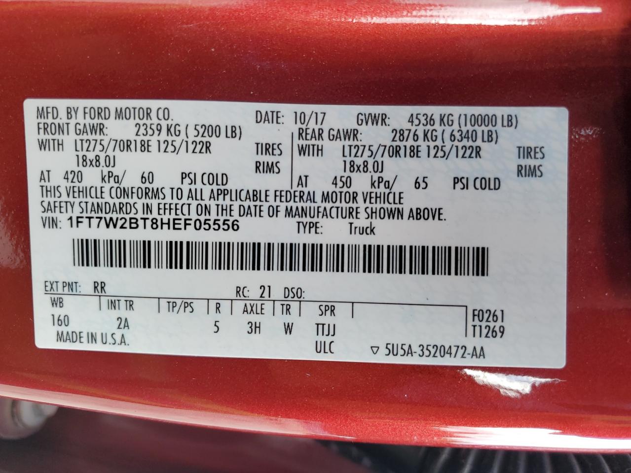 Колір ЧервонийЦиліндри 8Привід 4x4 з заднім приводомVIN 1FT7W2BT8HEF05556Стан НевідомоУшкодження Передня або задня