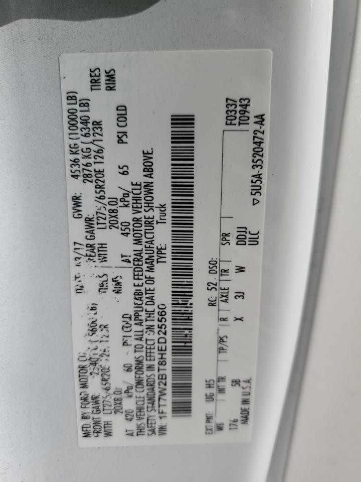 Колір БілийЦиліндри 8Привід 4x4 з заднім приводомVIN 1FT7W2BT8HED25560Стан НевідомоУшкодження Передня або задня