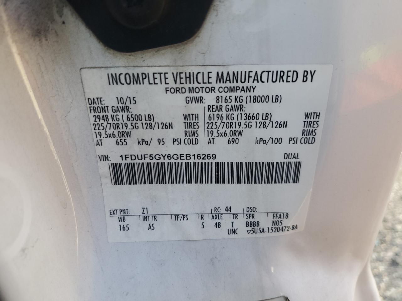Колір БілийЦиліндри 10Привід Задній привідVIN 1FDUF5GY6GEB16269Стан НевідомоУшкодження Механічні пошкодженняДата аукціону 2025-11-03