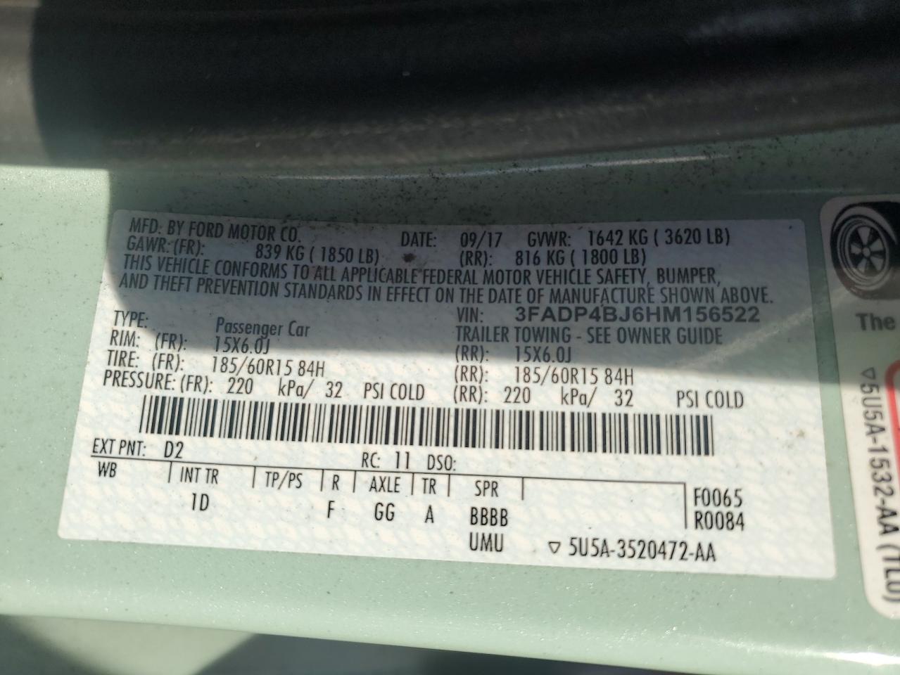 Колір ЗеленийЦиліндри 4VIN 3FADP4BJ6HM156522Стан НевідомоУшкодження ПерекиданняДата аукціону 2025-11-04