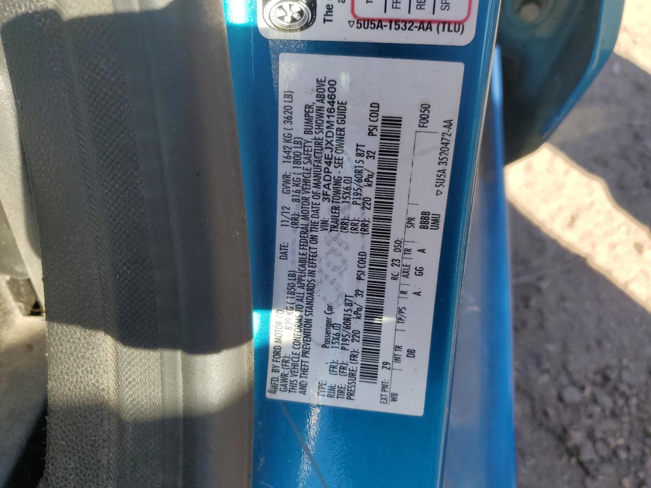 FORD FIESTA 1.6 2013 р.в., (3FADP4EJXDM164600) з США